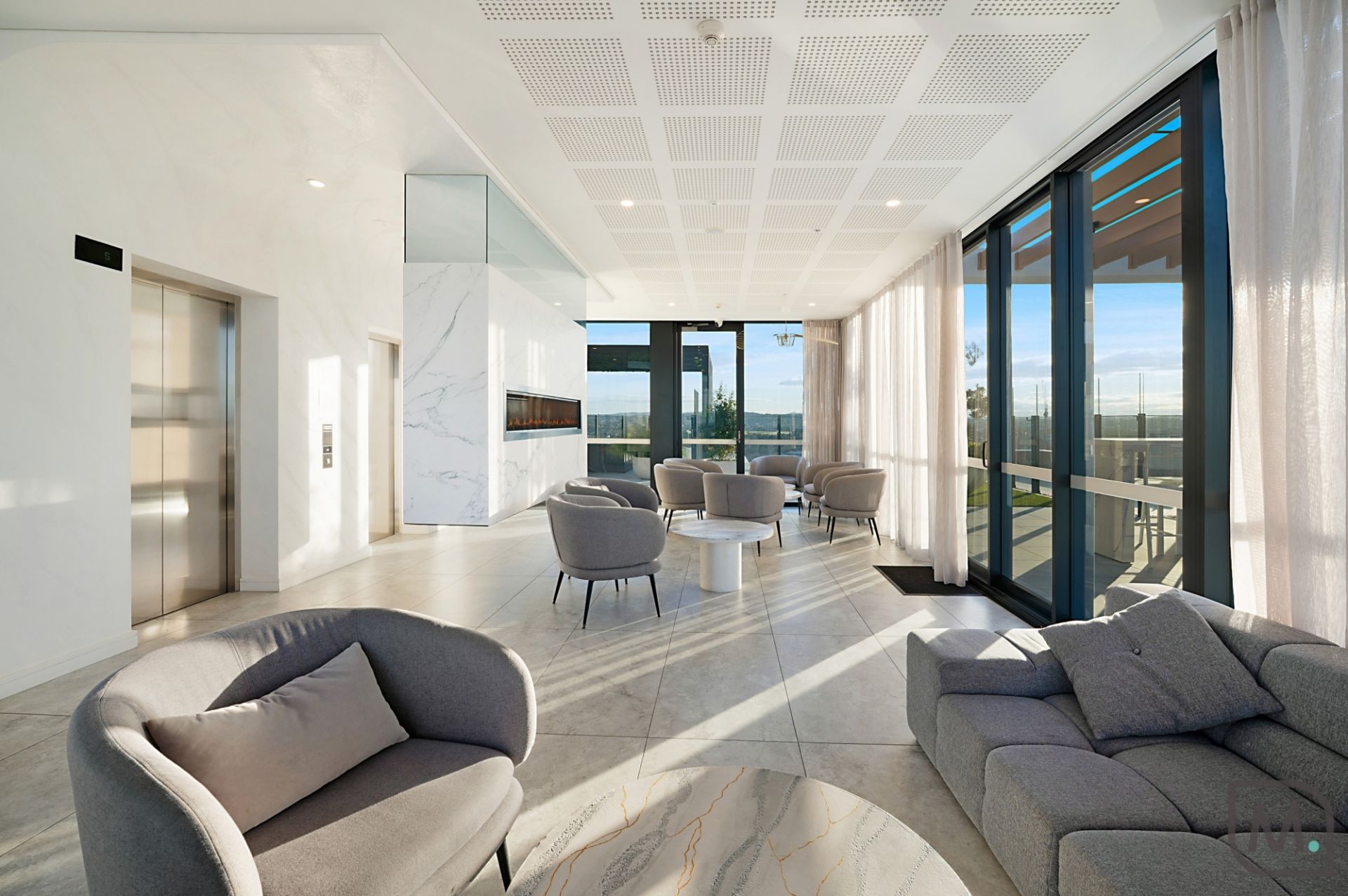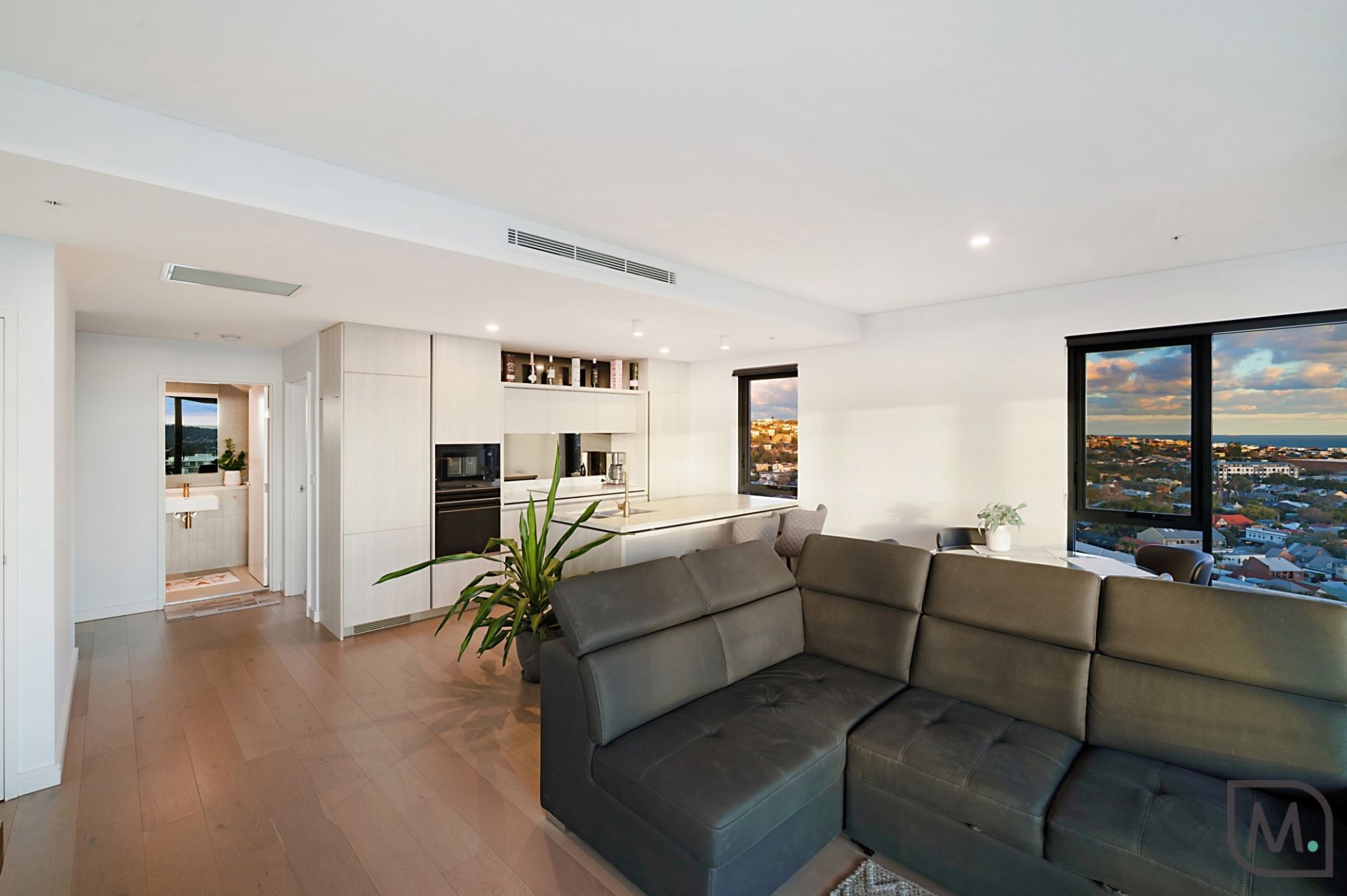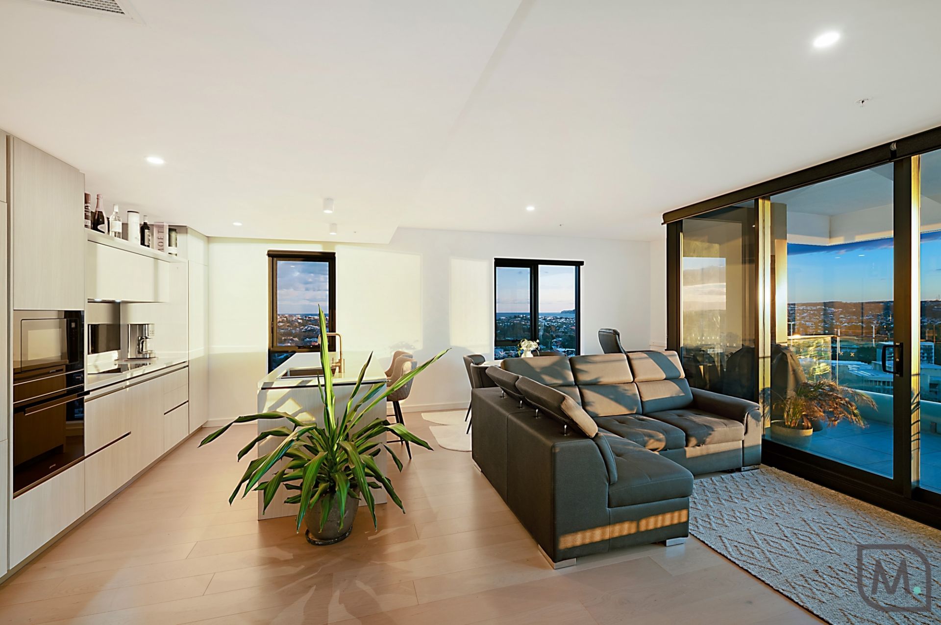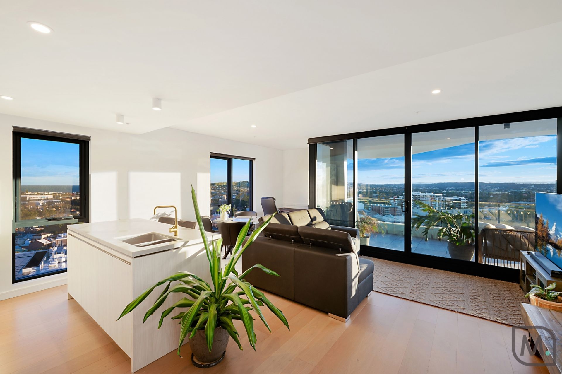 Life on the 17th floor at Sky Residences is all about perspective, literally and figuratively. From this sub-penthouse level, the city stretches out in every direction. Coastal views sweep from Dudley Bluff to Strzelecki Lookout, the harbour glimmers across to the marina, and the horizon fades westward to Mount Sugarloaf, where sunsets put on a show night after night.