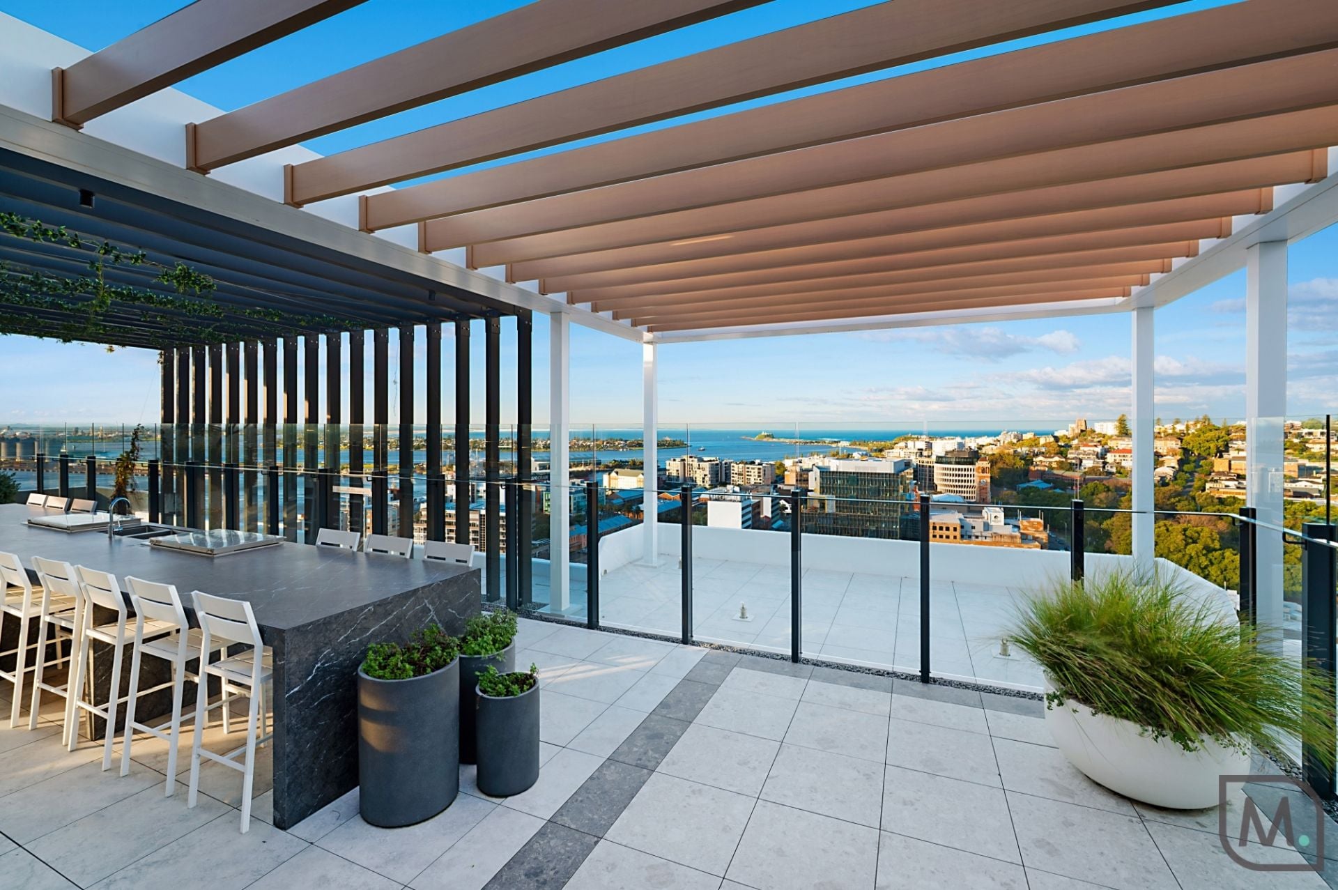- Alfresco entertaining balcony immersed in coastal, harbour and mountain views